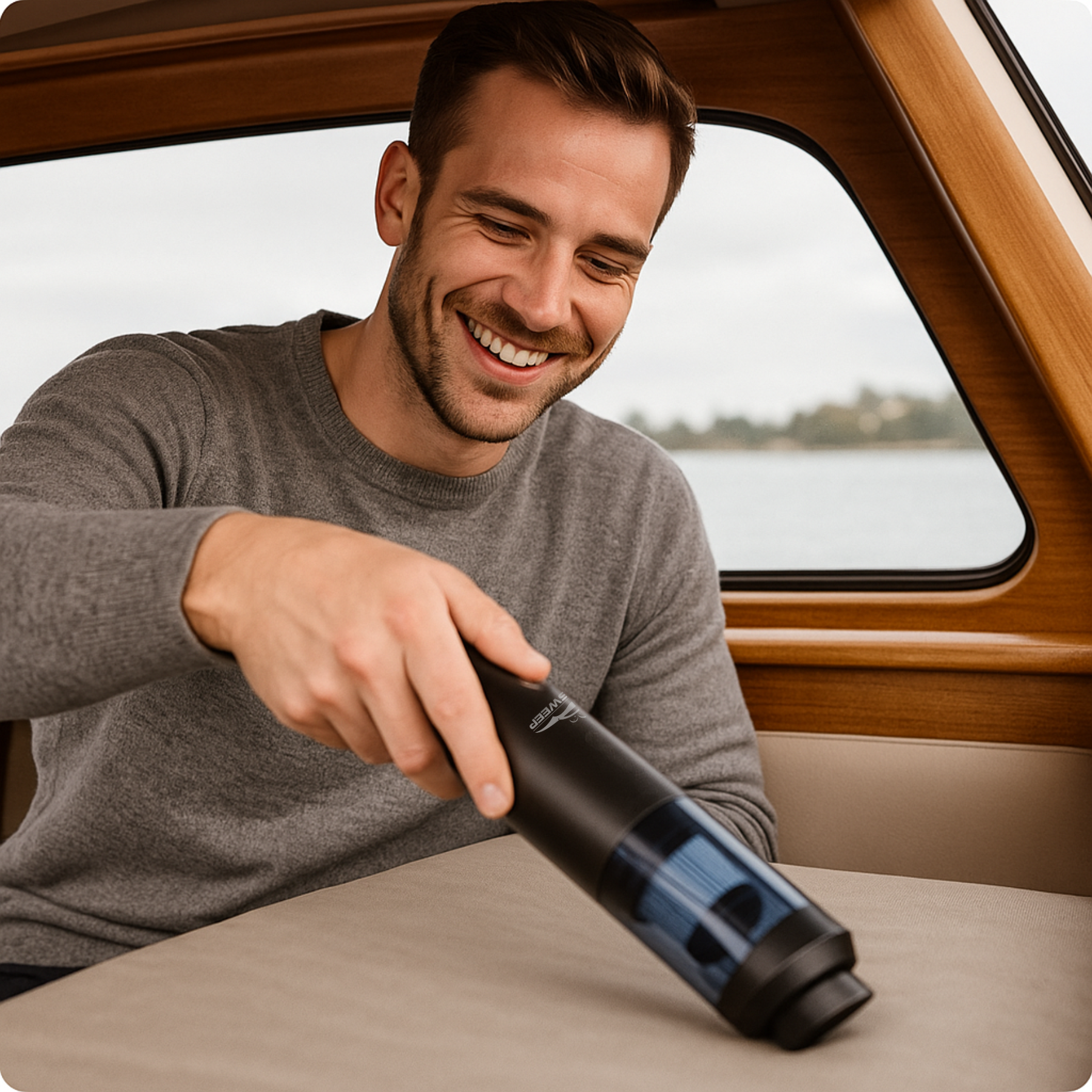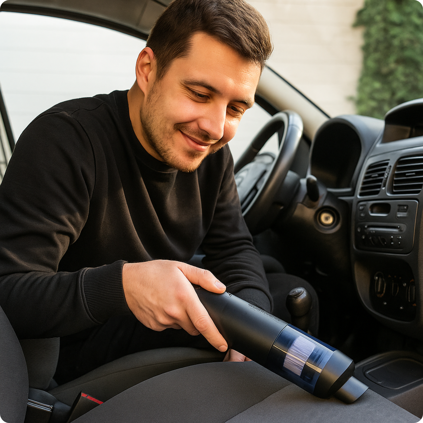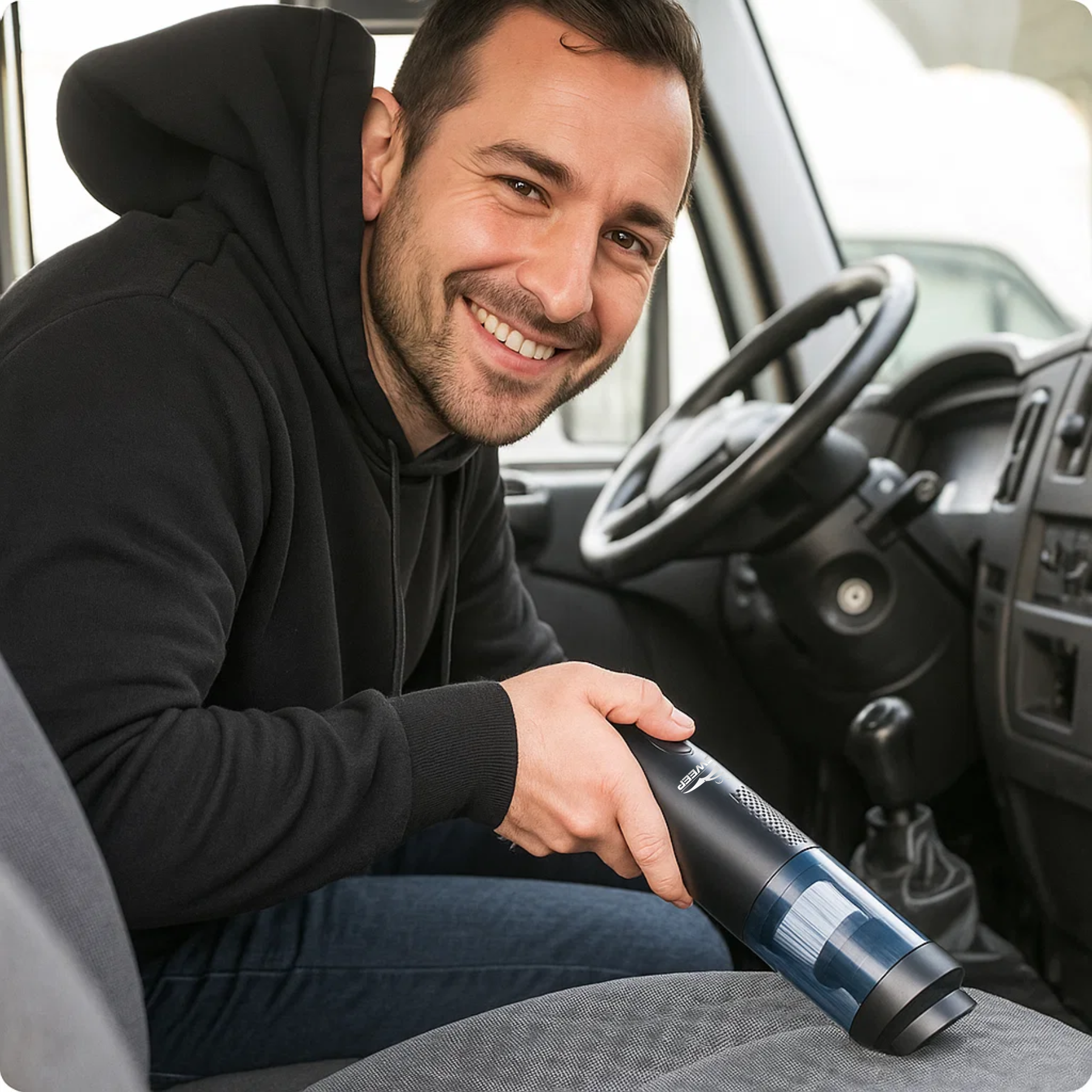Met zijn krachtige zuigkracht maak je de cabine in een handomdraai schoon.
