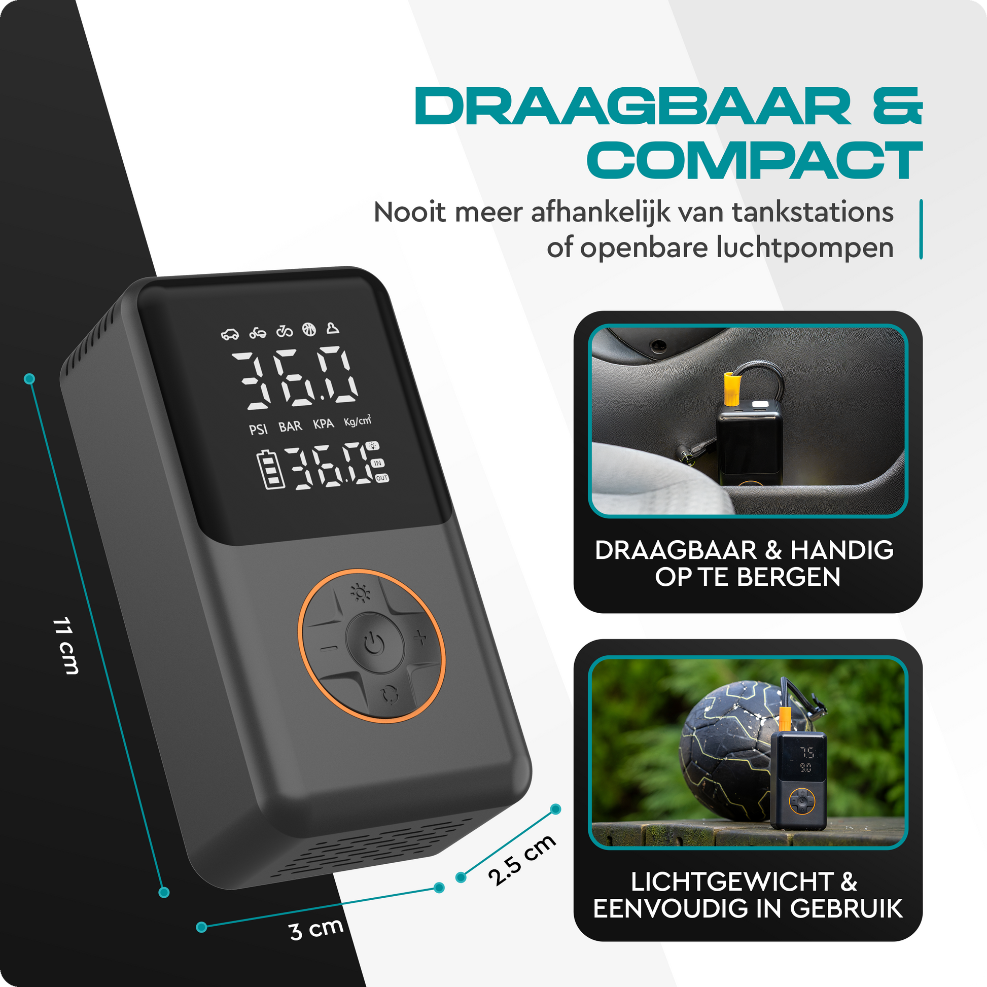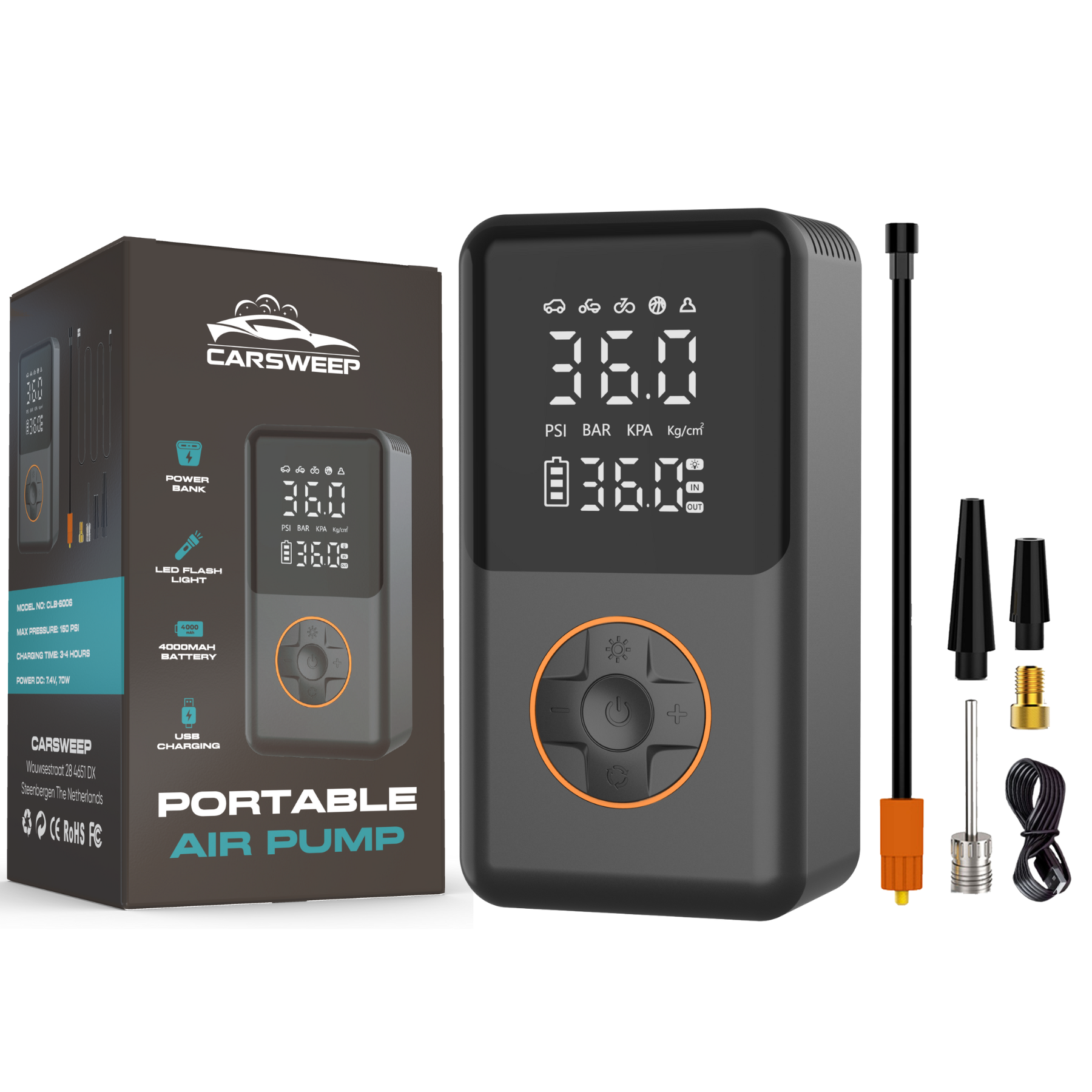 Met zijn combinatie van kracht, draagbaarheid en gebruiksgemak is de Carsweep® Bandenpomp een essentieel hulpmiddel voor iedereen die veilig en comfortabel wil reizen. Nooit meer afhankelijk van tankstations of openbare luchtpompen, u kunt uw banden altijd en overal oppompen.